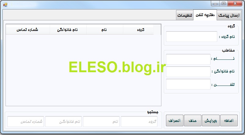 توضیحات : توسط این برنامه می توان پیامک فارسی و انگلیسی را برای تمام شماره ها ارسال کرد ، این برنامه دارای یک دفترچه تلفن با قابلیت گروه بندی می باشد و سورس آن مناسب افرادی است که دنبال پروژه نمونه برای کار با موارد زیر هستند .